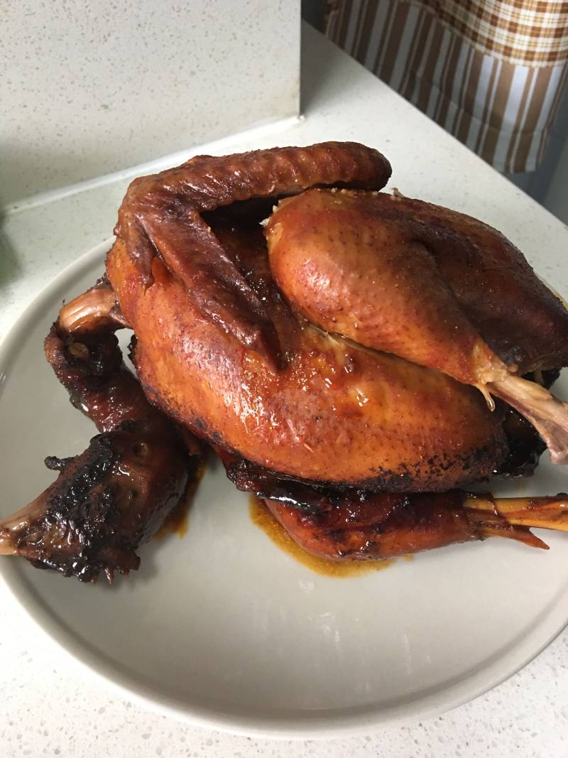 一只大腌鸡有我,3人有1/4只就够一餐了