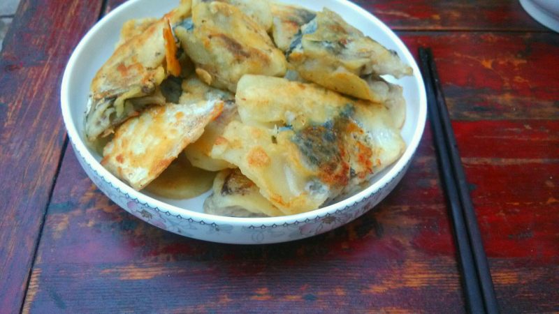 5:煎熟,两边金黄,撒上一点蒜和辣椒即可食用。