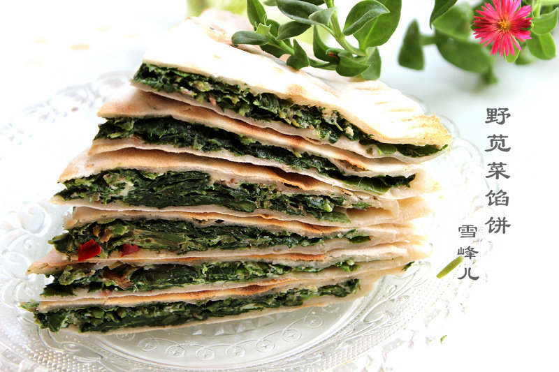 1,擀好皮以后,加馅,可以直接把鸡蛋磕上,以防止流汤。2,野菜水分少,洗好后控干水分即可,一般不用盐再去掉多余的水分,烙好的饼也不会水分大,口感还好。
