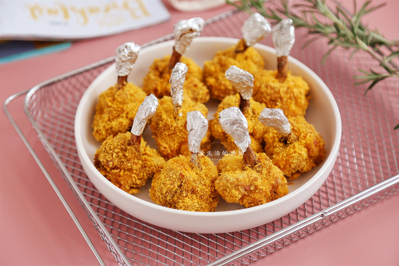 1.造型:先将鸡翅根底部连接骨肉的筋膜煎断,再用刀顺着骨头将鸡腿肉剔到三分之二处,最后将鸡翅根翻下来,这样一个可爱的小棒槌的形状就出来了;2.腌制:鸡翅根加入盐、葱姜蒜末、生抽、料酒和泰式辣椒酱(其实成品一点不辣,也可以用叉烧酱或者海鲜酱替换)等调味料,腌制时间在两个小时以上;3.炸制:将腌制入味的鸡棒槌表面裹上面包糠,最后炸熟即可;因为喜欢更健康也不想开炸锅,就用空气炸锅了。