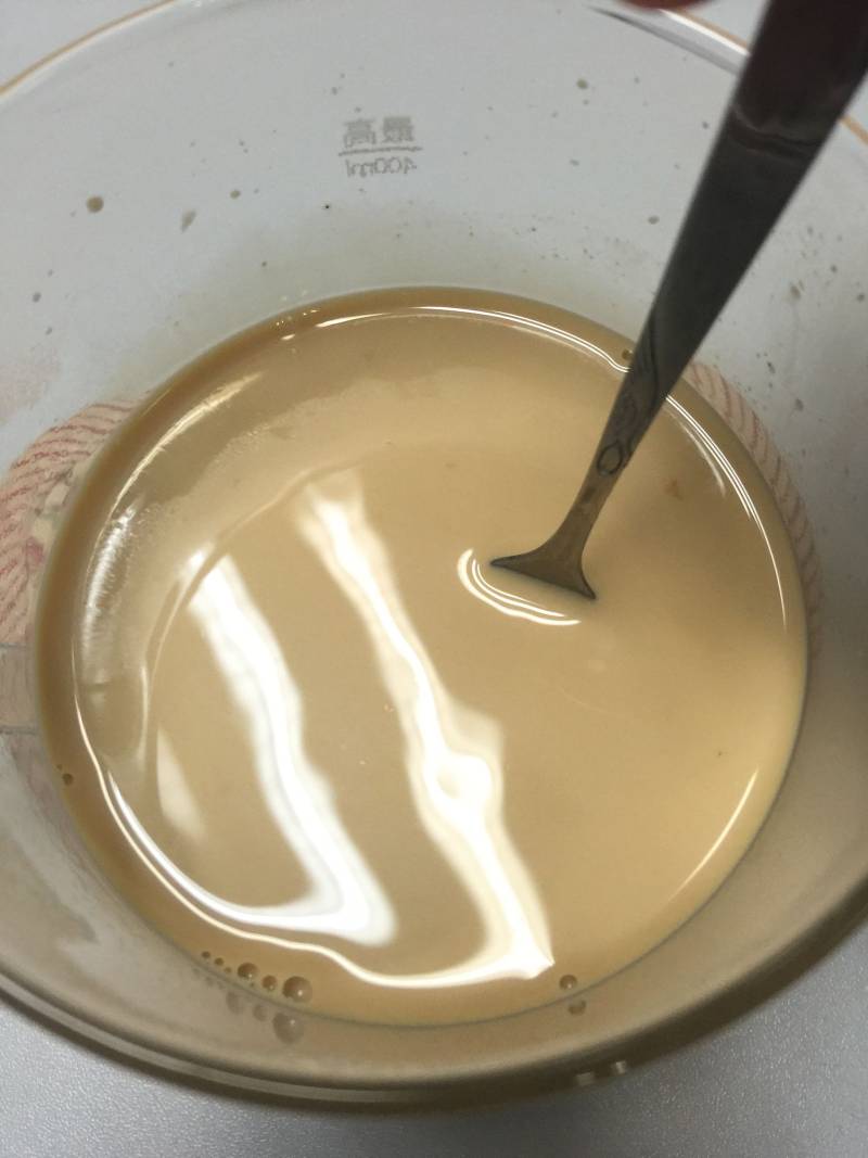 6:把泡软的吉利丁片放入,吉利丁片溶化,搅拌均匀。