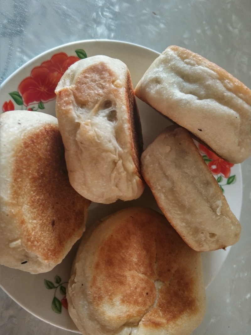 3:烙至两面上色以后转小火,盖上锅盖焖15分钟。中途翻面。