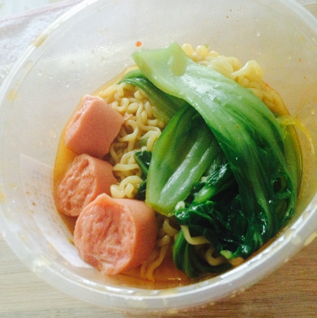 辛拉面1个;绿叶蔬菜1棵;