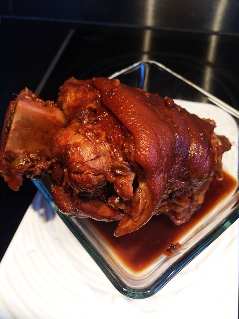 6:约一个半小时后,汤汁变浓,肘子酥烂了。
