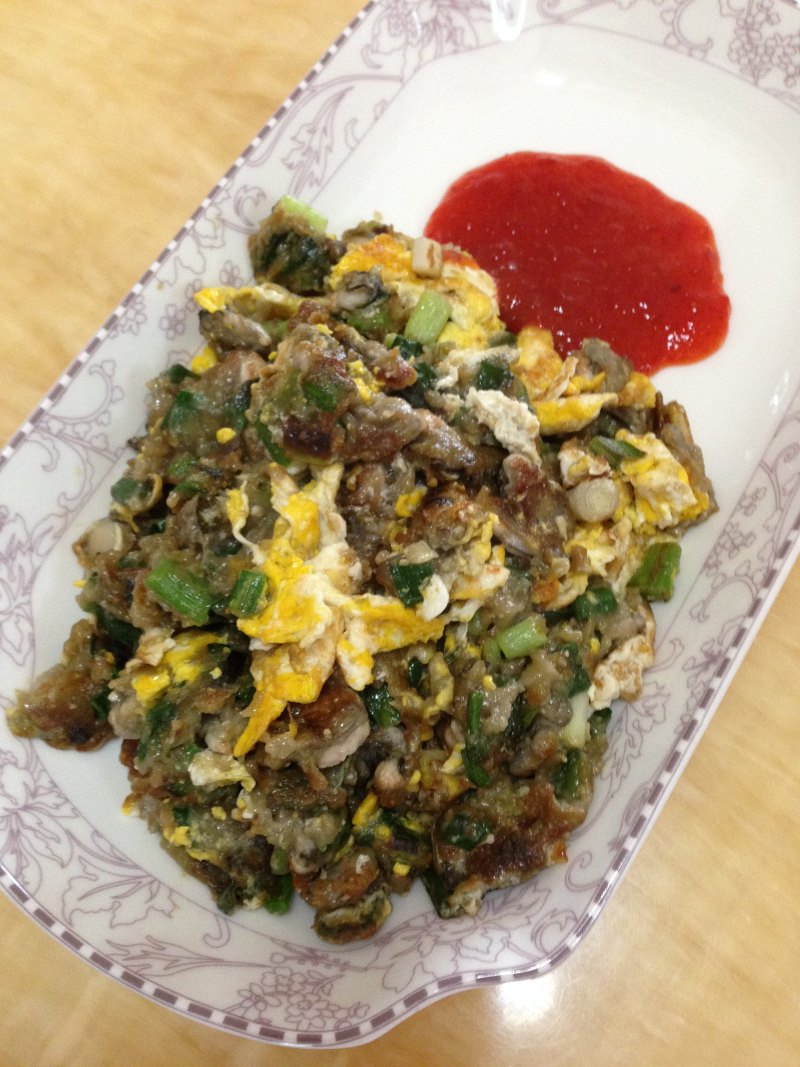 1:把海蛎,鸡蛋,盐,生抽,葱末搅拌在一起