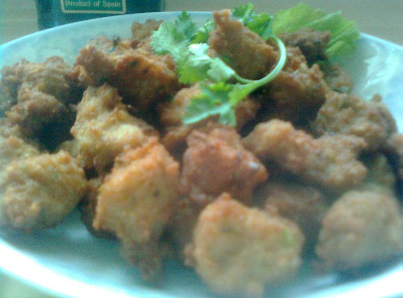8:锅中油5分热时下入小丸子,炸至熟透,捞出沥油。
