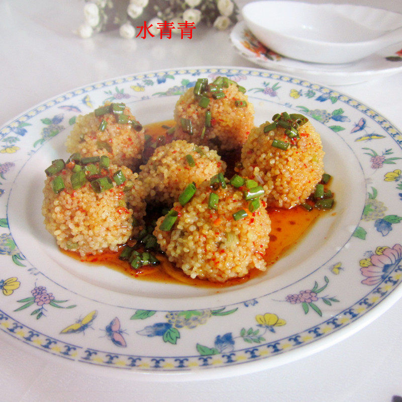 9:蒸好的小米丸子浇上调好的调汁上桌。