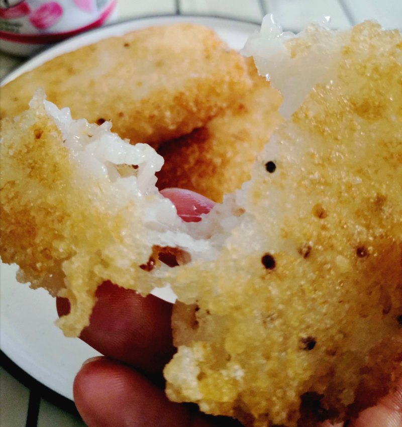 7:沥干油,外焦里糯,香喷喷的糍饭糕就炸好了。