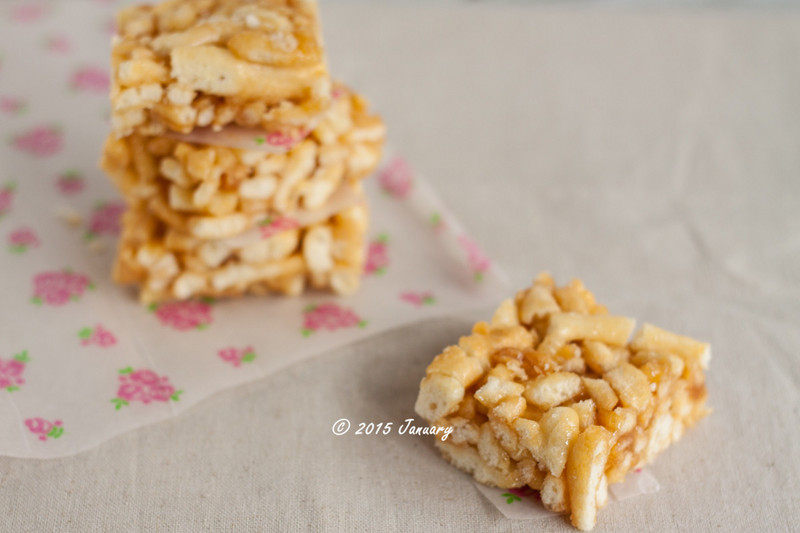 13:等沙琪玛完全冷却,黏合在一起以后,脱模并切成小块即可。