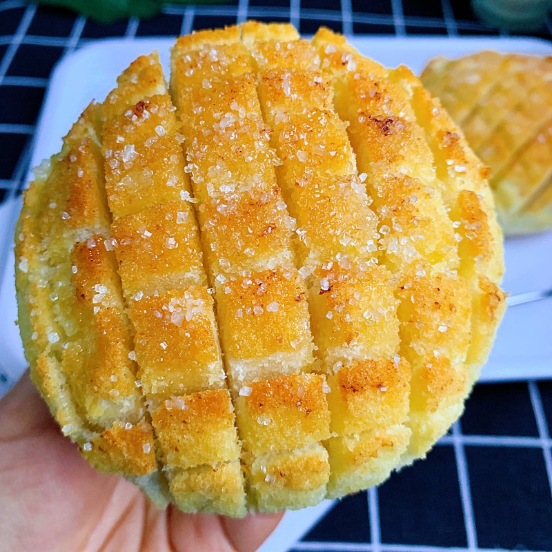 馒头的四周不要切太深了,会散开。烤盘最好垫油纸,好清理。