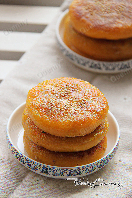15:平底锅中放少许油,放入做好的南瓜饼,小火煎至两面金黄即可