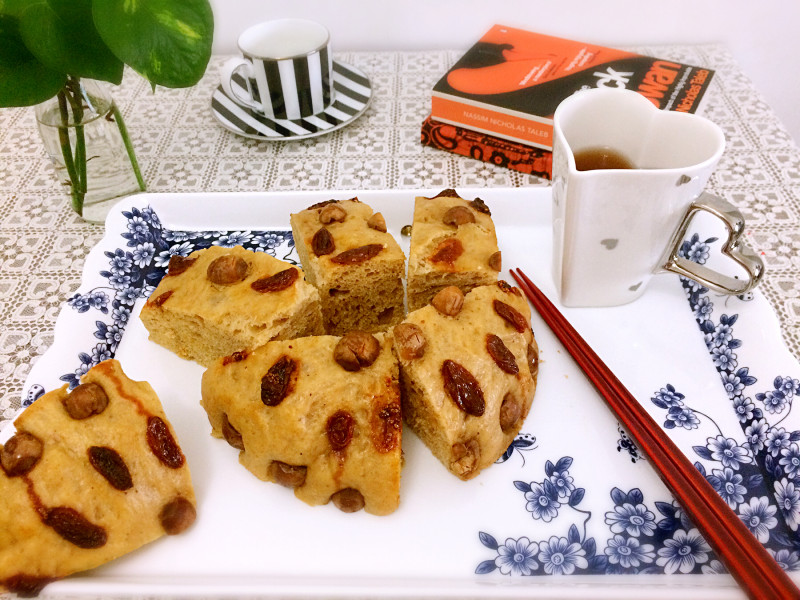 低筋面粉100g;红糖85g;水45g;葡萄干50g;