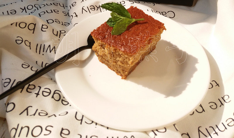 10:倒入铺好油纸的方形深烤盘中,可以撒上白芝麻,我家没有