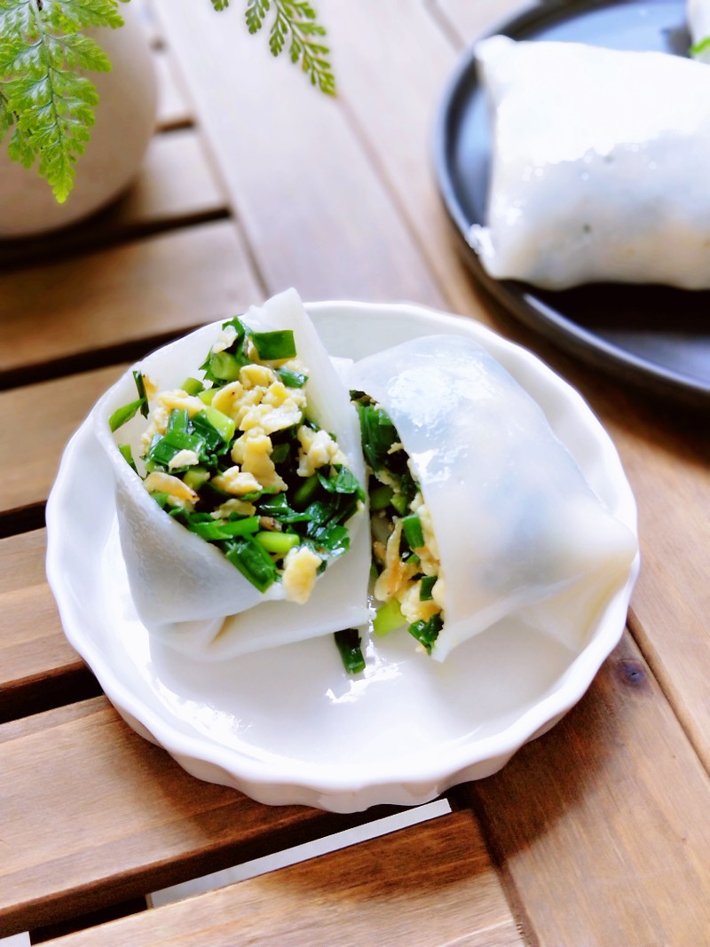 肠粉专用粉100g;韭菜120g;鸡蛋2个;