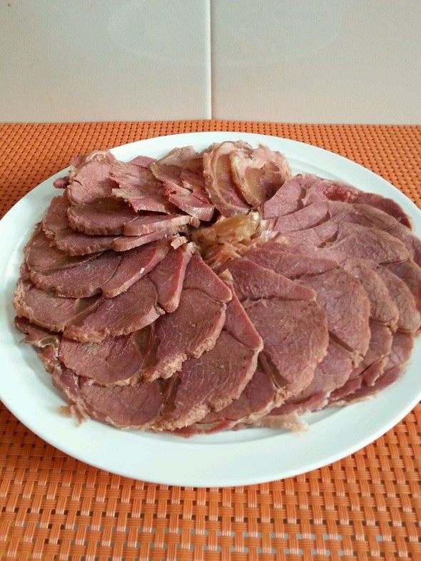 6:这是昨天晚上卤得肉料。牛肉冷水下锅焯出血水,在清水中加入八角、桂皮、料酒、老抽、生抽、辣椒、放入牛肉小火炖两个小时,加入煮好的鸡蛋、香菇,再次炖15分钟,然后就可以了。