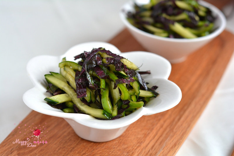 里面的食材比例可以调整;拌好后一定要赶快吃,要不然就口感蔫蔫的不脆灵了;把紫苏换成白苏也好吃噢。