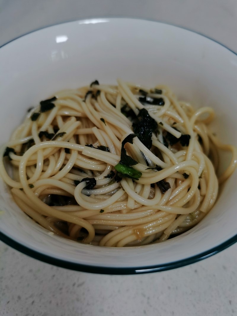 4:将蛋饼条、紫苏碎及切成丝的红椒(哎,这步忘拍了),混合在一起。