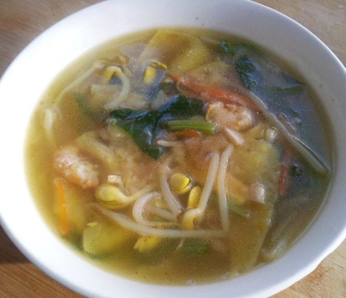 1:饹馇切菱形块,胡萝卜切丝,豆芽菠菜洗净,备小料。