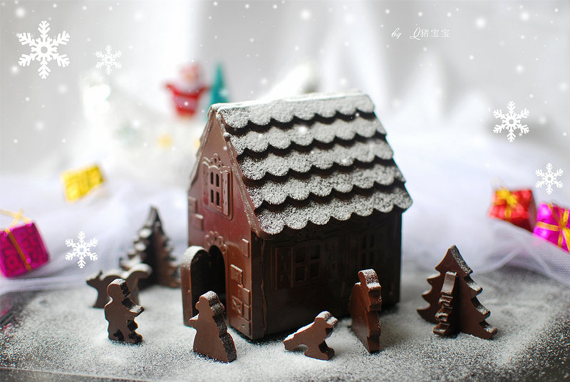1:准备圣诞屋硅胶模,黑巧克力,刮板。