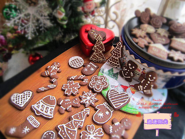 低筋面粉130g;糖粉70g;黄油75g;可可粉15g;全蛋30g;泡打粉1/4小勺;香草精2滴;
