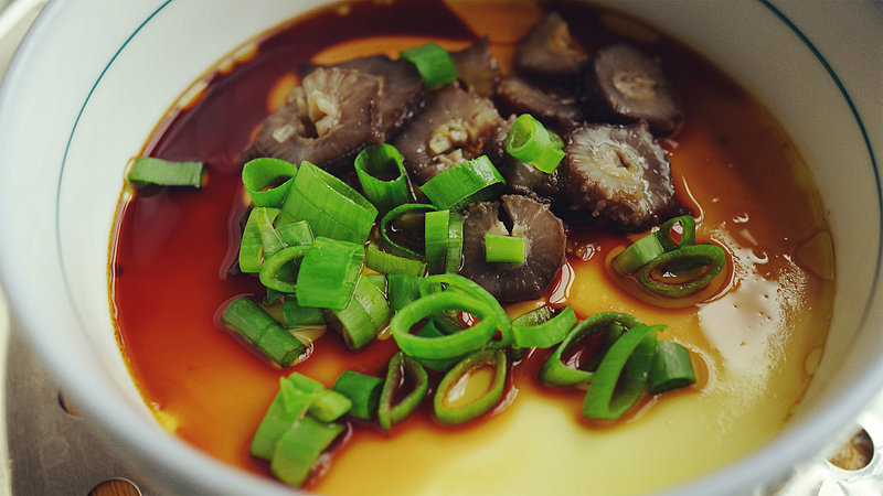 8:一碗好的海参蒸蛋应该是滑嫩细腻、葱香缠绕、平滑如镜的。