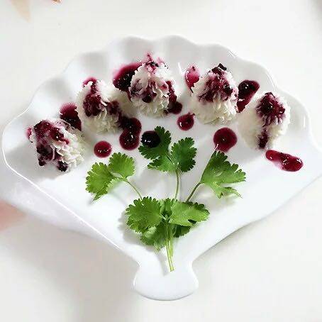 6:裱岀一朵朵小花状,然后淋上蓝莓酱