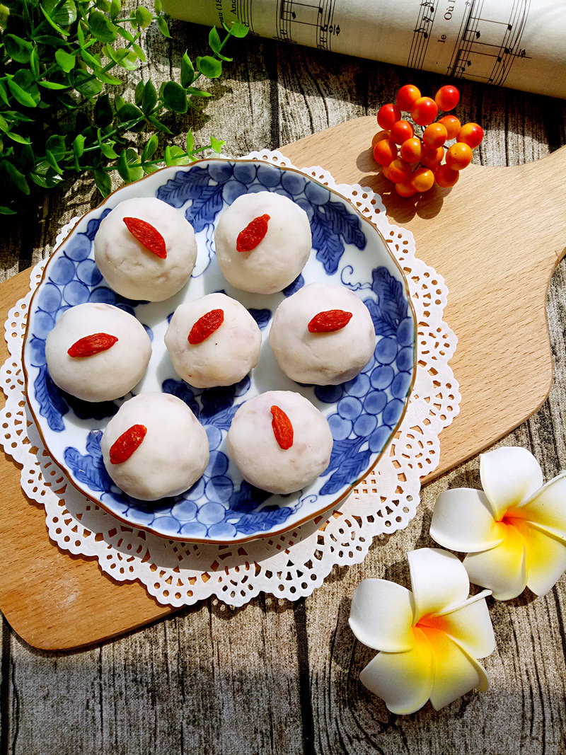 2:糯米粉微微火炒熟变有点发黄即可。少量加入糯米粉与山药泥混合能成团就好想要入口即化糯米粉不宜过多不然就硬了