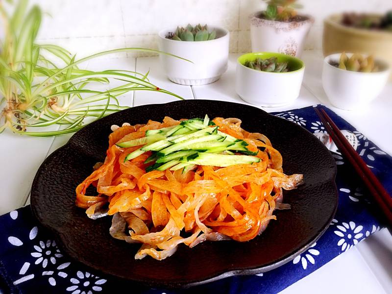 7:搅拌均匀后可以再加点黄瓜丝即可