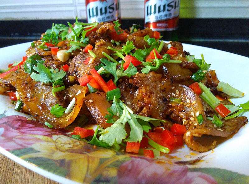 1:猪葱嘴洗干净,用料酒、姜粉的水煮熟。