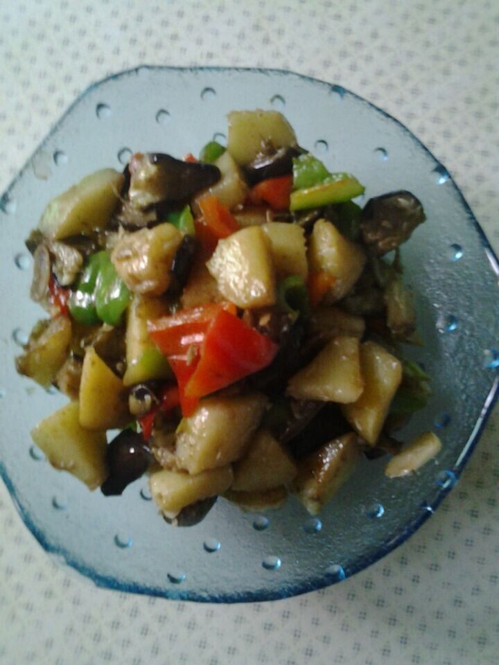 土豆2个;青椒半个;红椒半个;茄子2个;