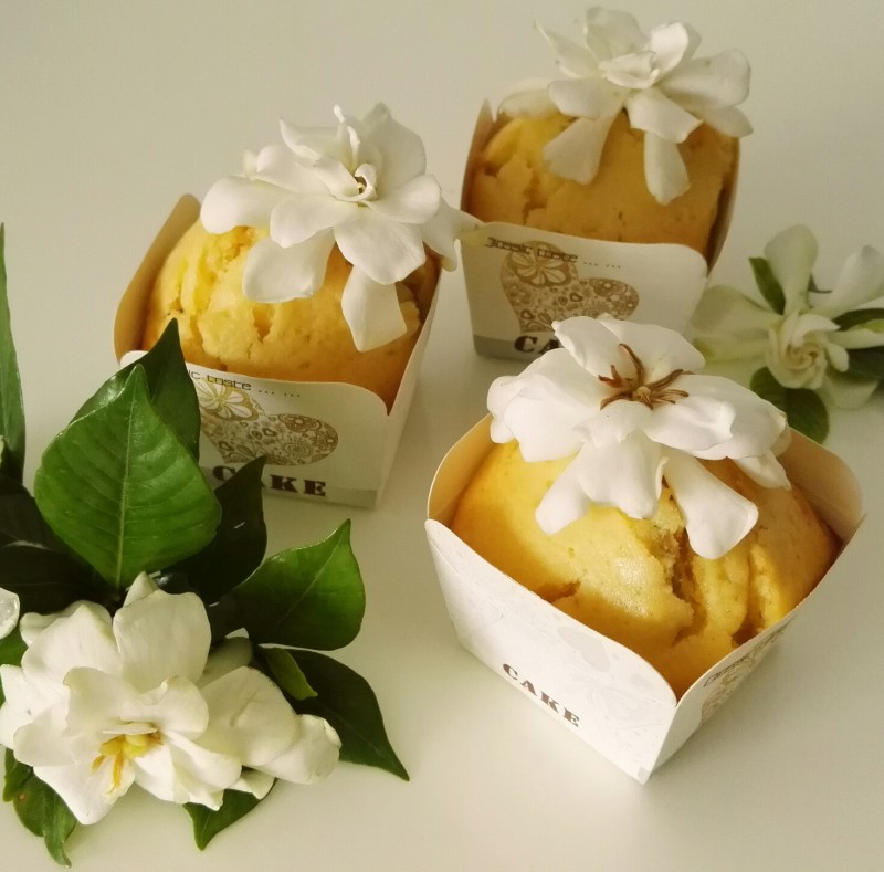 5:出炉。插上洗净的栀子花,漂亮啊!又香~又美~
