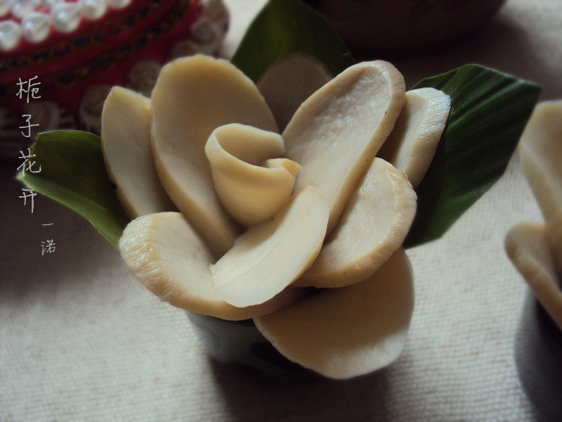 5:栀子花在沸水中已经烫熟,只要调料翻拌均匀即可出锅。
