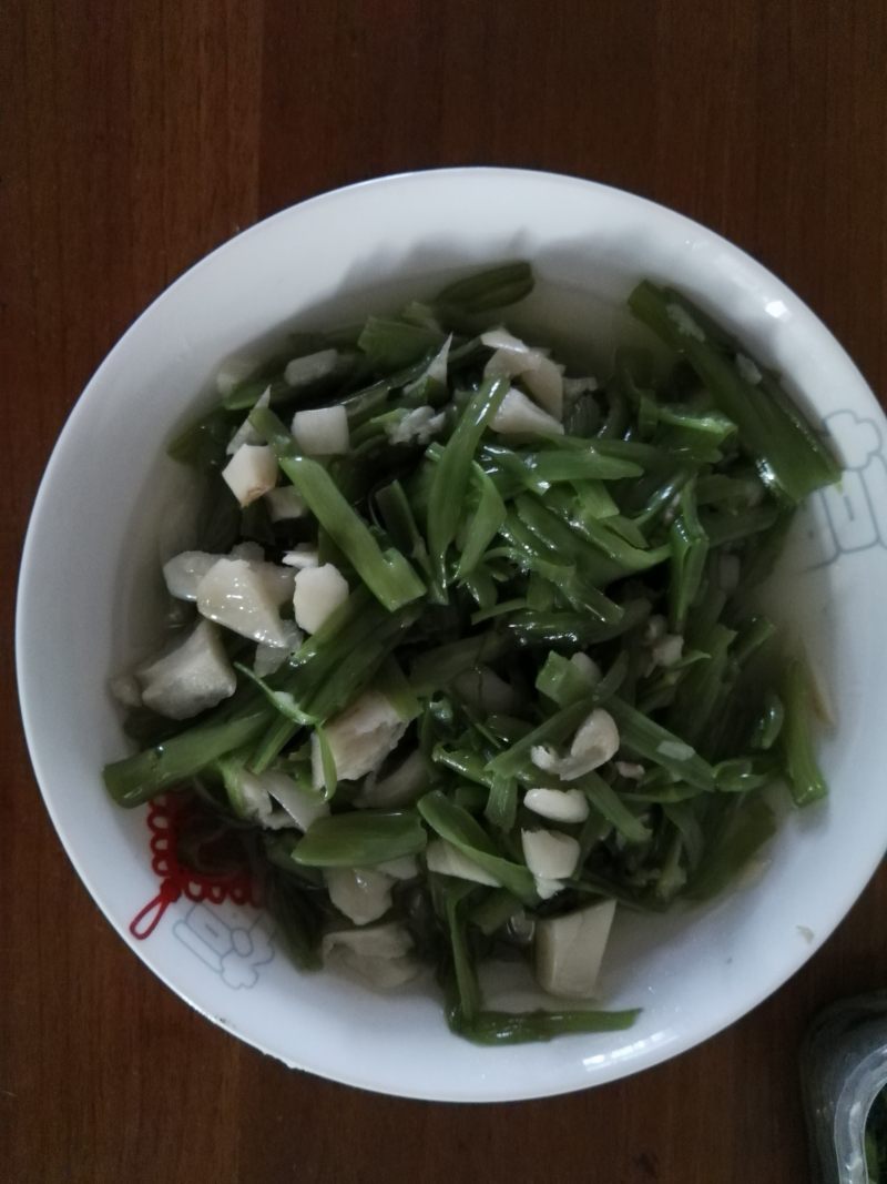 1:空心菜择洗干净后掐成5厘米长的小段。