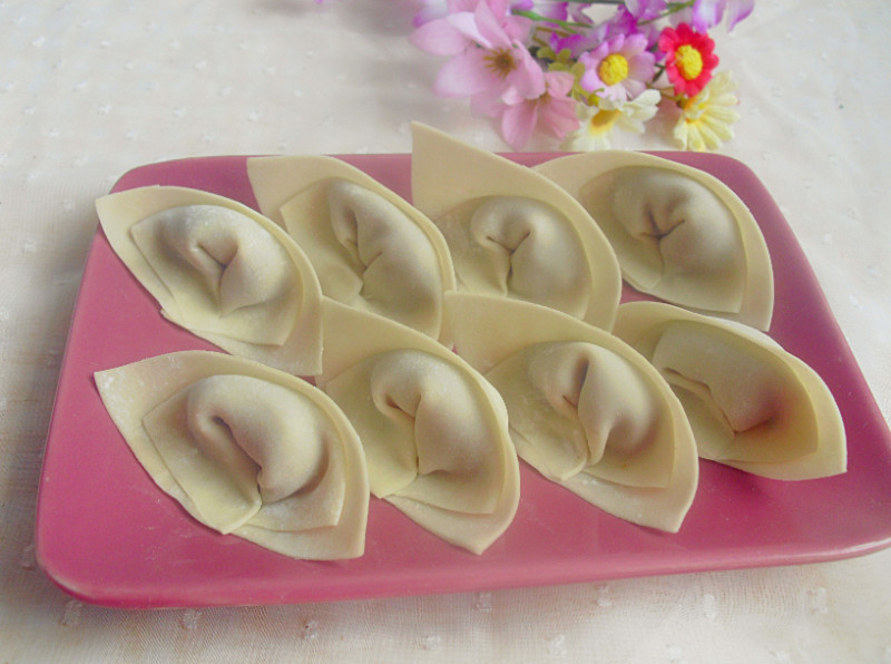 8:对折捏起来,包成馄饨。