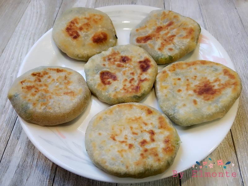 7:面团比较软不需要用擀面棍,只要用手按下就可以不要弄太薄,包的时候手上抹掉手粉或者食用油这样就不会粘手,一斤面粉我做了16个饼。