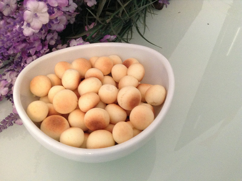 8:揉好的小馒头坯放进垫有烤纸的烤盘中,个与个之间要留一点间隙,因为烤制时还会膨胀。