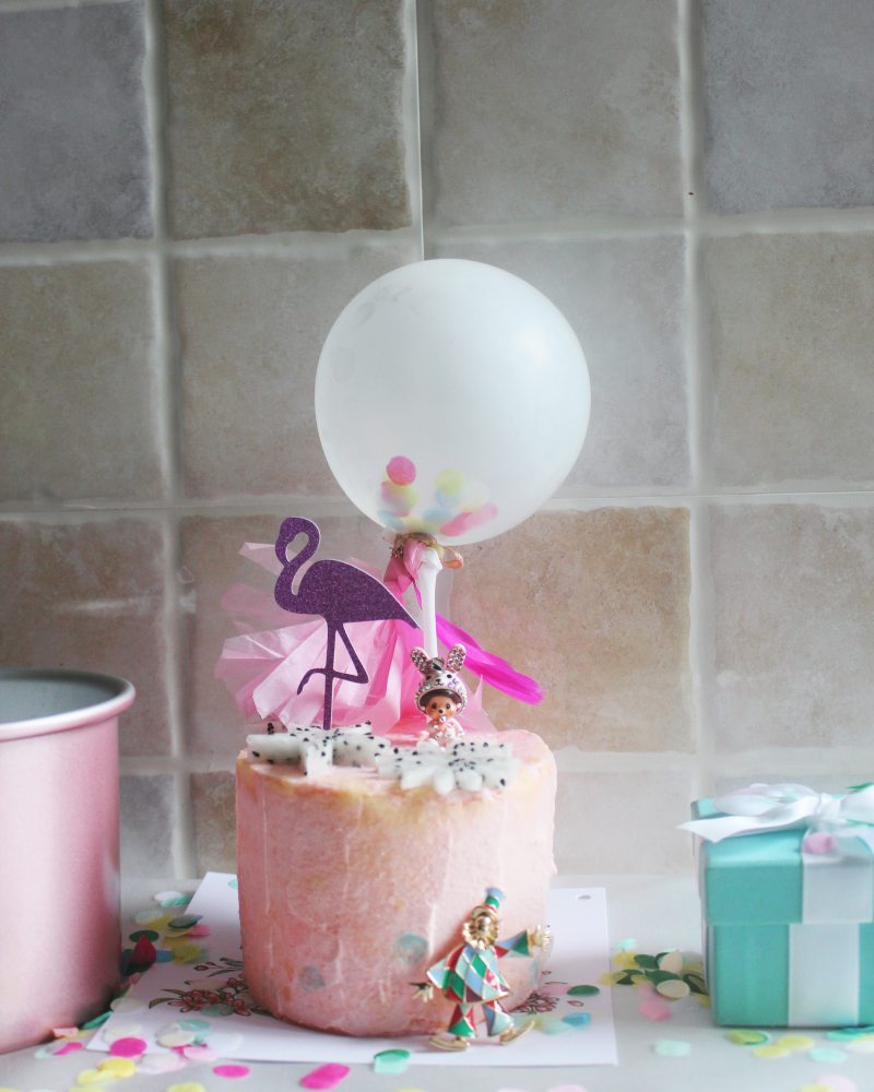 10:打发奶油加入粉色色素,用充满童趣的装饰品点缀即可。