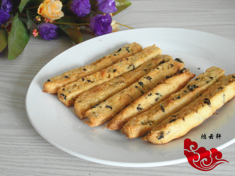 1,没有紫菜用海苔。2,蛋液要分次加入。3,不冷藏,可以直接擀成薄饼,切条,移入烤盘进行烘烤。4,烤箱温度和时间仅供参考。5,饼干如果做的厚,需要延长烤制时间。6,盐的多少需要根据肉松的咸度搭配。