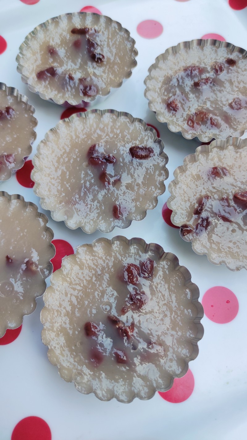 9:蒸好后关火,焖几分钟,凉了之后放入冰箱冷藏一会儿,口感会更好。凉了之后跟容易脱模。
