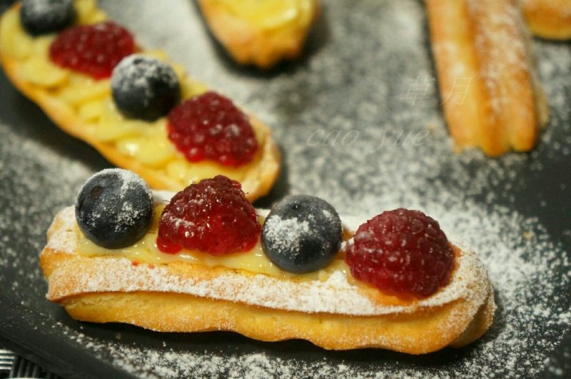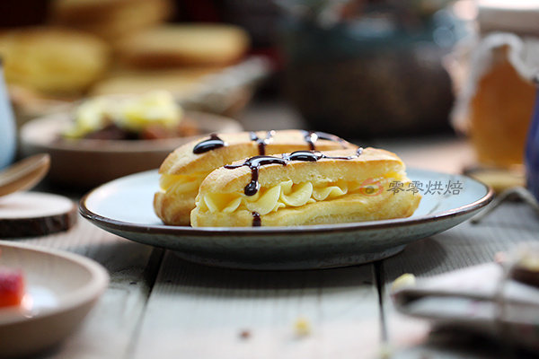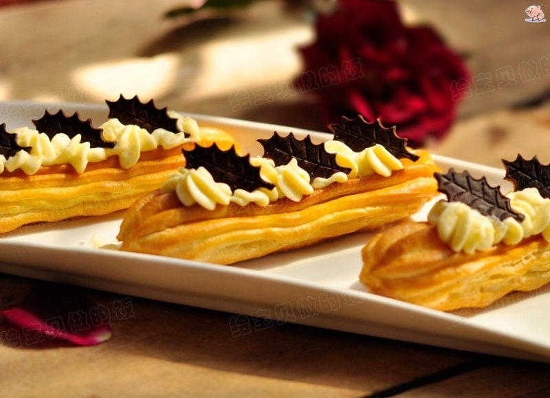 12:剖开泡芙用花嘴挤入冷藏的卡仕达酱,外酥里嫩,有如冰淇淋口感,香软幼滑