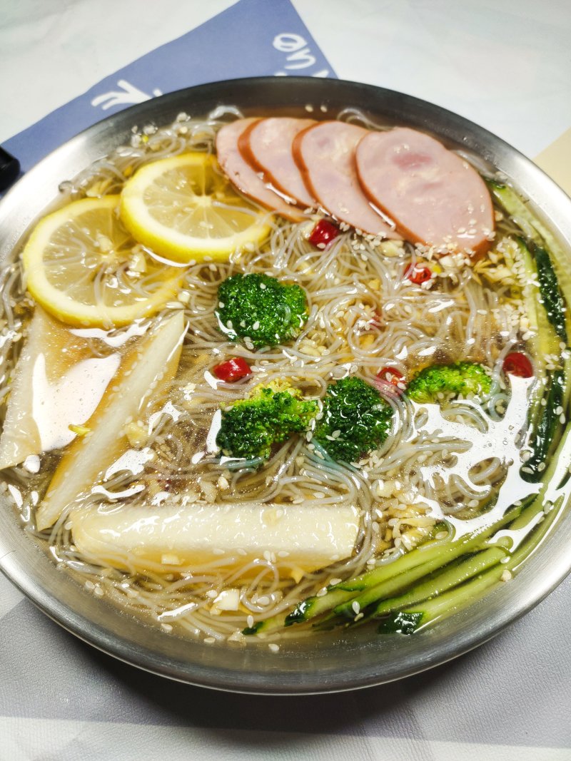 1:西兰花焯水加几滴油不要太长时间保持翠绿。粉丝焯水都焯完过凉水。辅料:柠檬几片去籽防止苦蒜末适量小米辣白芝麻。