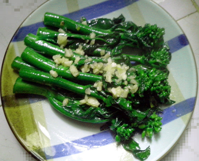 1:把芥兰洗干净。2.把蒜头剁碎。