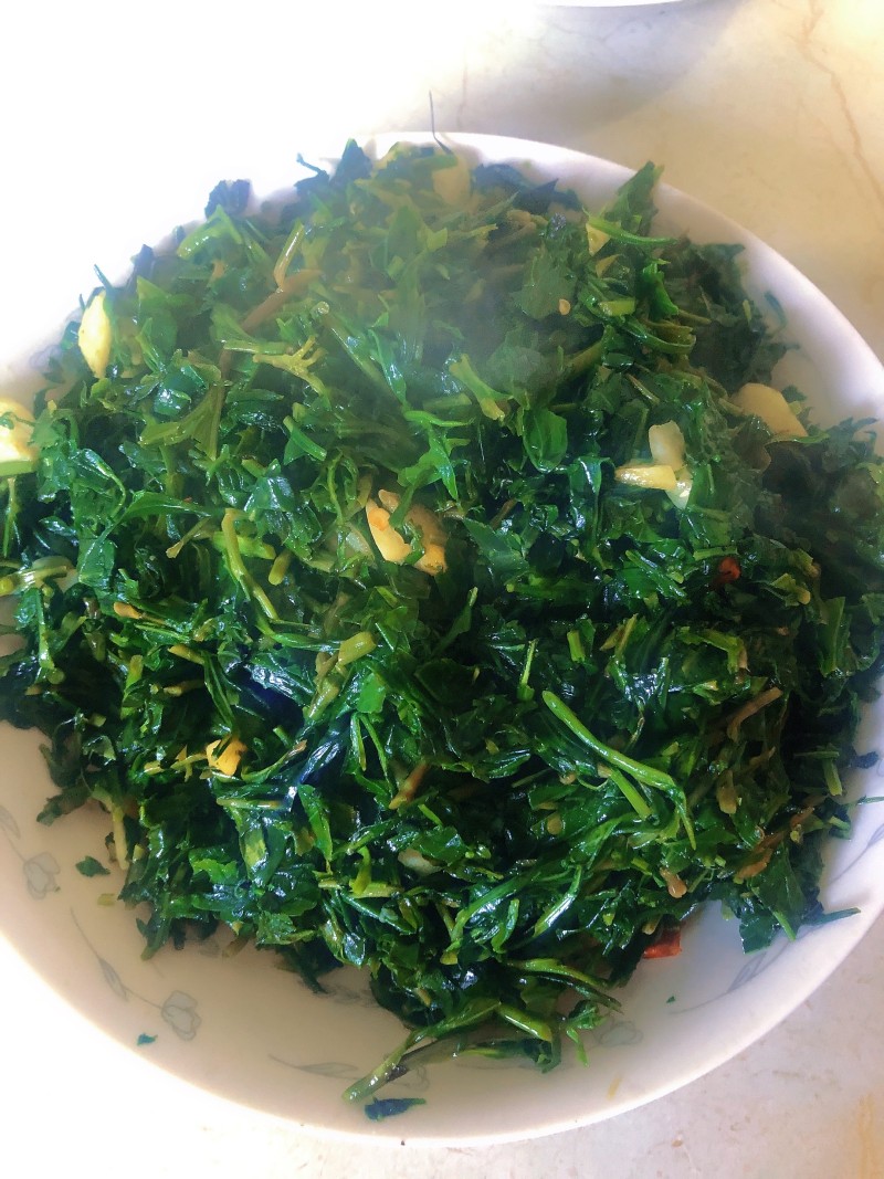 3:热锅冷油爆香蒜末,放入马兰头稍微翻炒几下加入适量盐和鸡精调味即可。