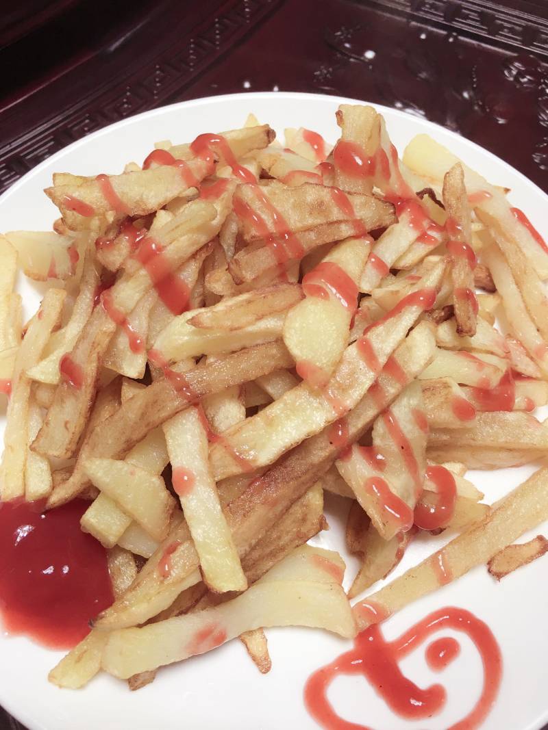 4:炸制土豆条金黄即可捞出沥油。搭配番茄酱或是辣椒粉都很好吃的哦!