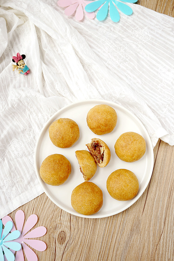 1:馅料:玫瑰酱(取花瓣)50克,熟糯米粉20克,煮熟的腊肉130克,白糖100克,蜂蜜15克。