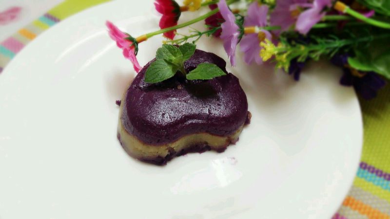 1:蒸熟的紫薯趁热用叉子压成泥。