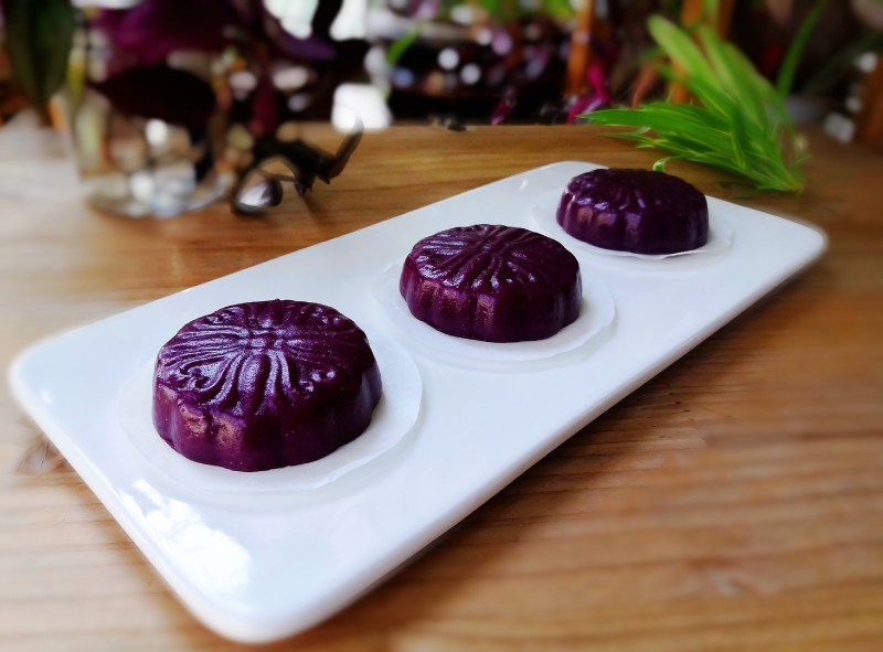 1.根据粉类吸水性调整紫薯泥的量。2.成型时薄薄滚一点粉即可。3.可以用月饼模印自己喜欢的图案。4.一定要垫油纸防粘。5.如果用蒸锅蒸,冷水上锅,上汽后再蒸10分钟,关火立即出锅。6.此方可做20个成品。
