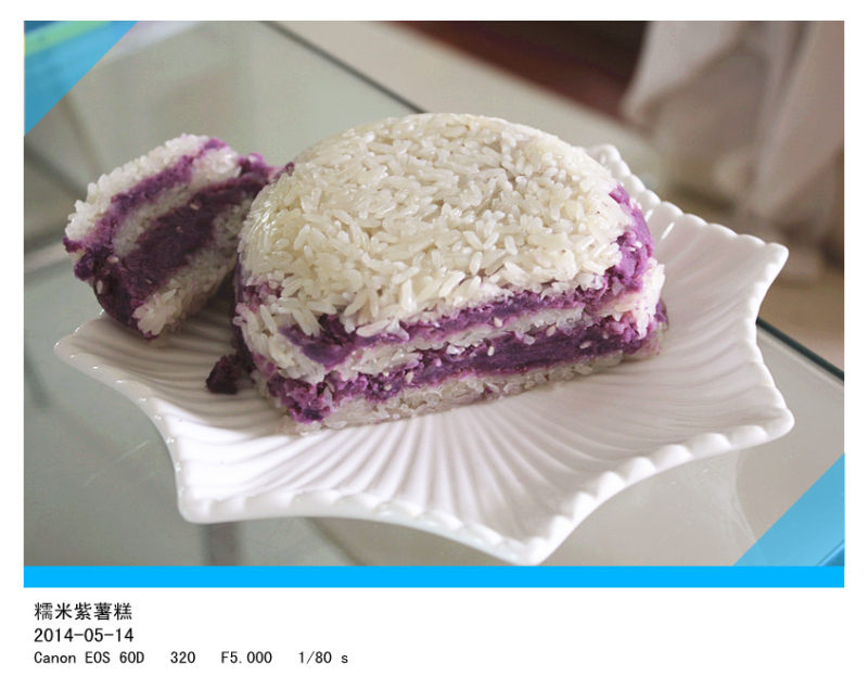 8:蒸好的紫薯糯米糕非常粘,我非常喜欢。