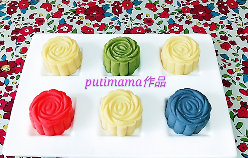 11:三种颜色的豆沙月饼既美观、又可放心即食。