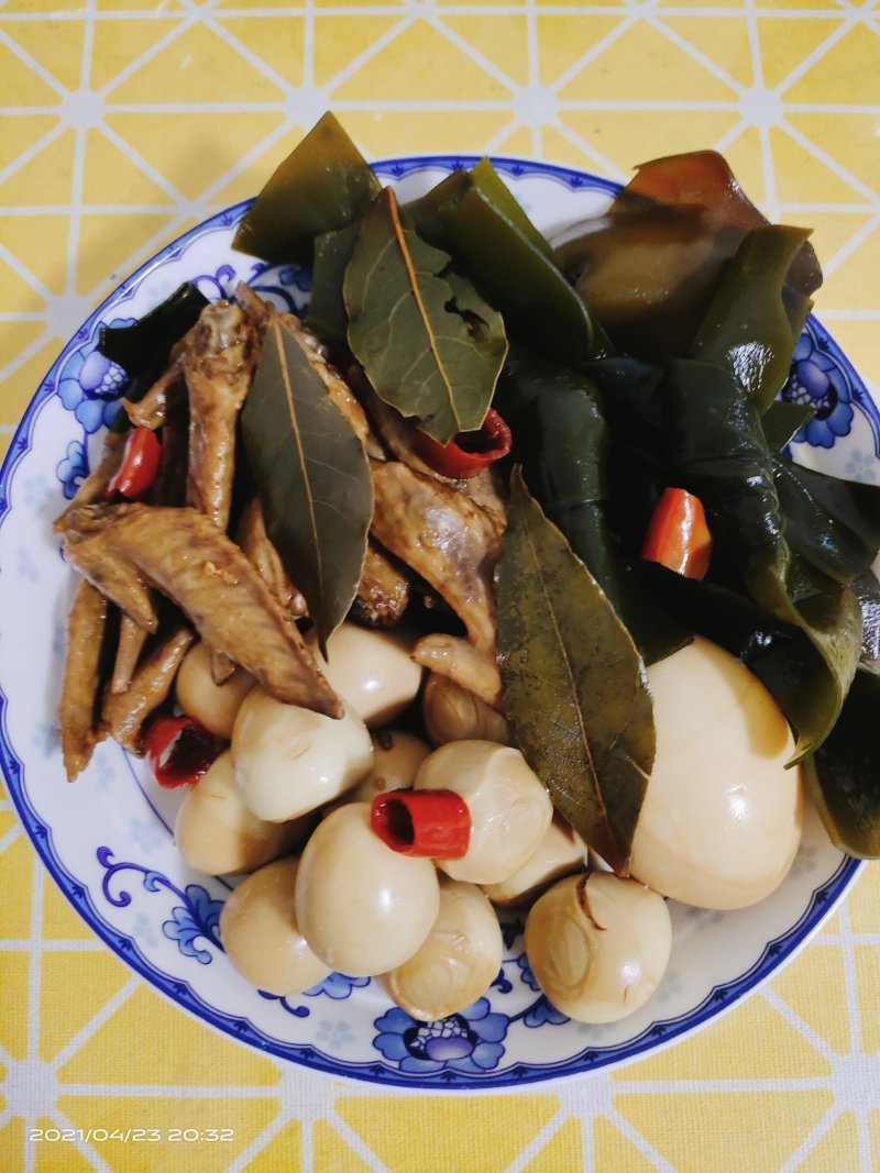 鹌鹑蛋20个;鸡翅尖10个;海带结15个;